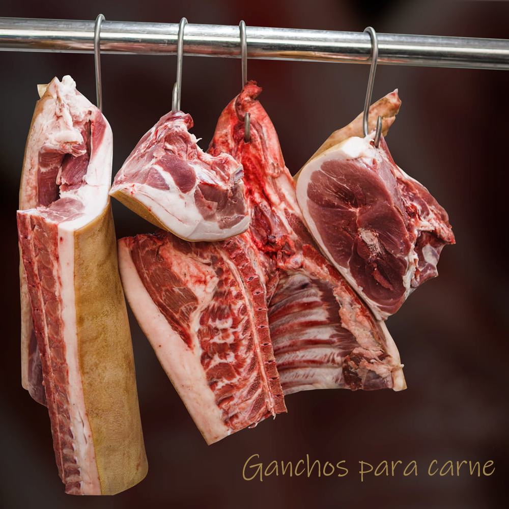 - Os ganchos são acessórios indispensáveis em frigoríficos e açougues, pois facilitam a armazenagem das carnes em câmaras frias e permitem uma melhor exposição da carne nos balcões expositores.