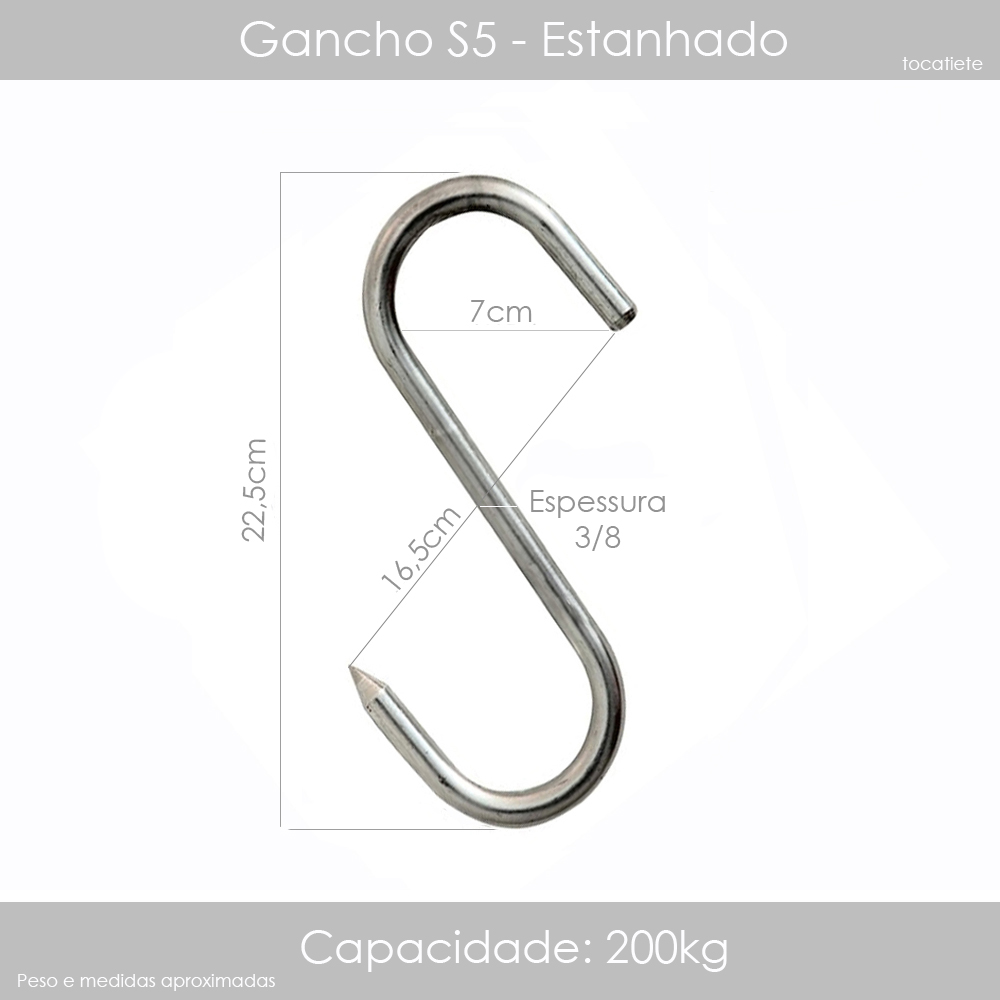 Gancho S5 Estanhado Para Carne 22,5cm Picelli - Capacidade 200kg - Kit c/6