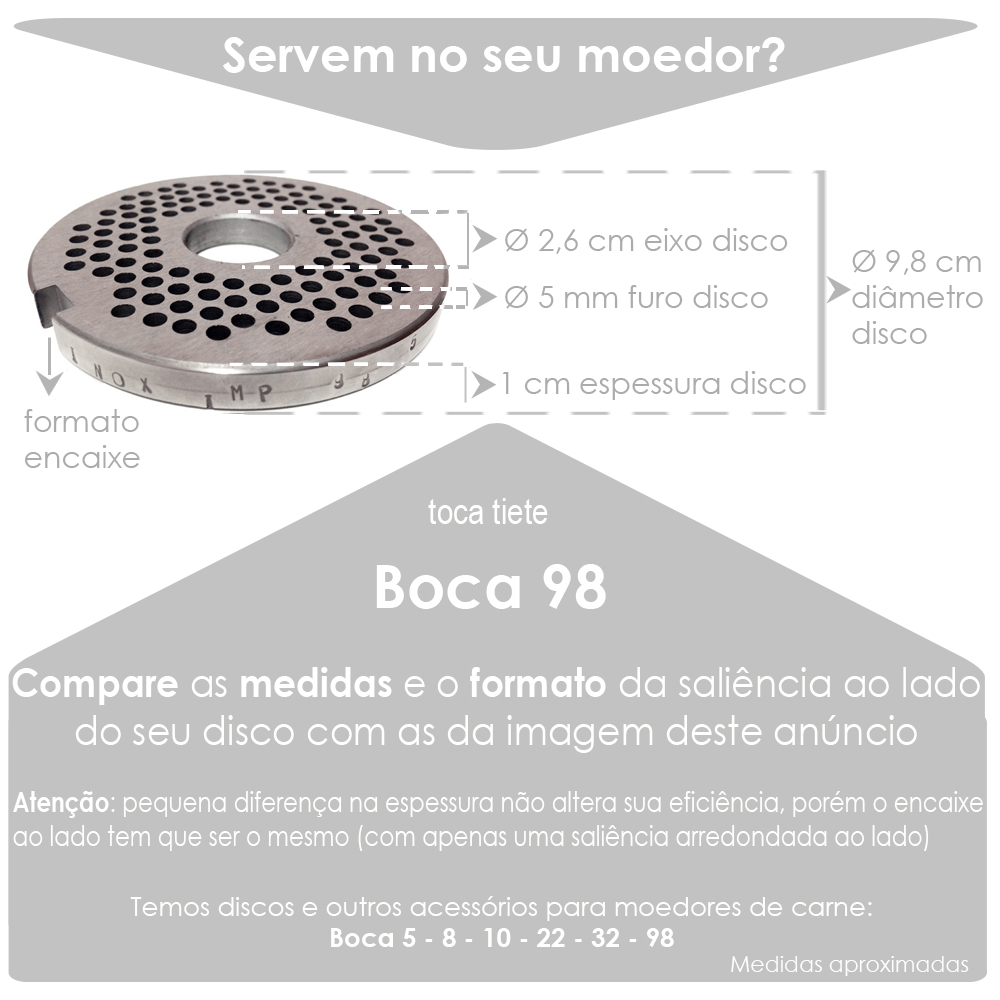 Caso seu moedor de carne não seja de alguma dessas marcas mencionadas acima, por favor, compare as medidas e o formato de encaixe do seu disco com as da imagem do anúncio.