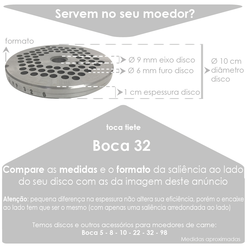 - Caso seu moedor de carne não seja de alguma dessas marcas mencionadas acima, por favor, compare as medidas do seu disco com as da imagem do anúncio.