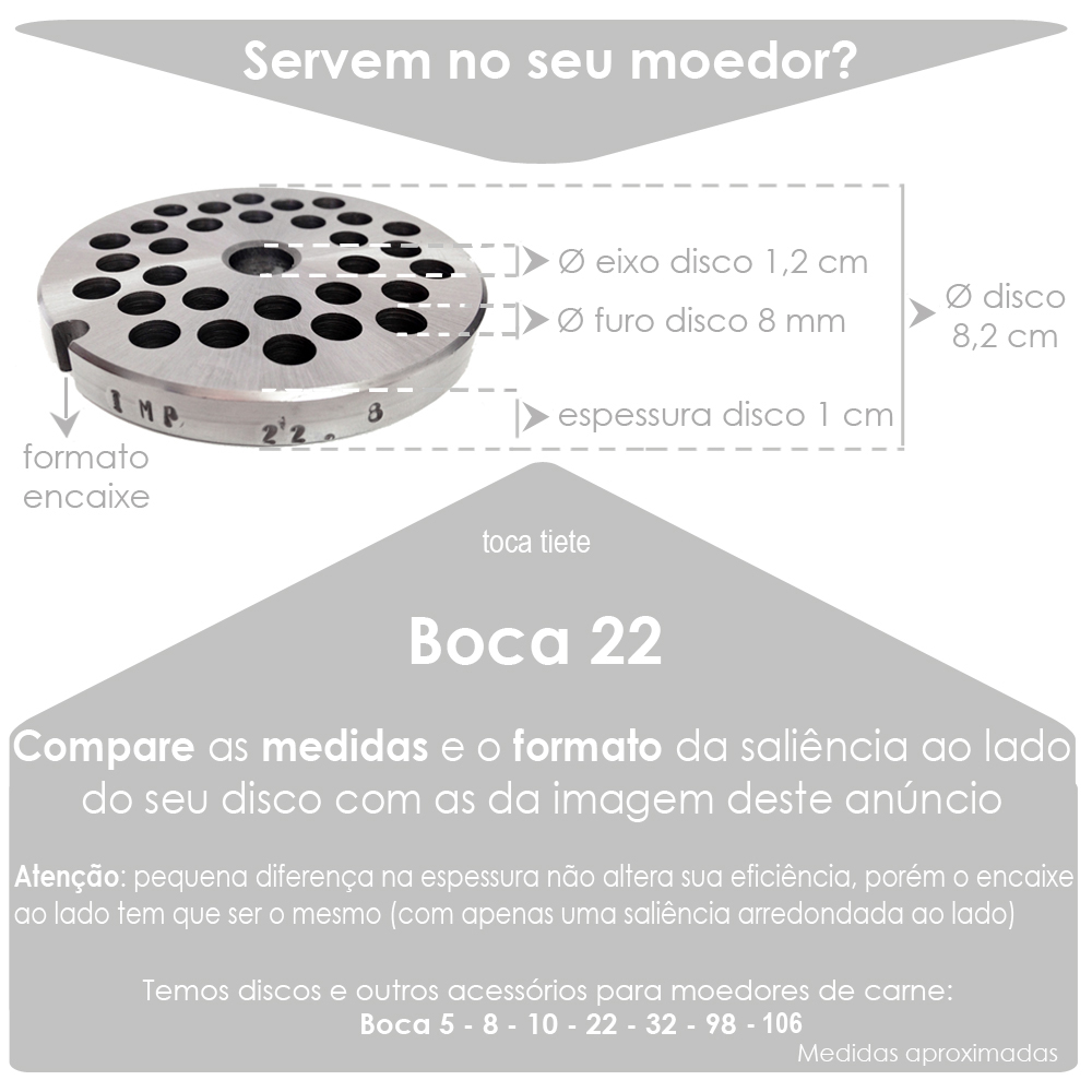 - Usado em Moedores de Carne manual ou elétrico Boca 22